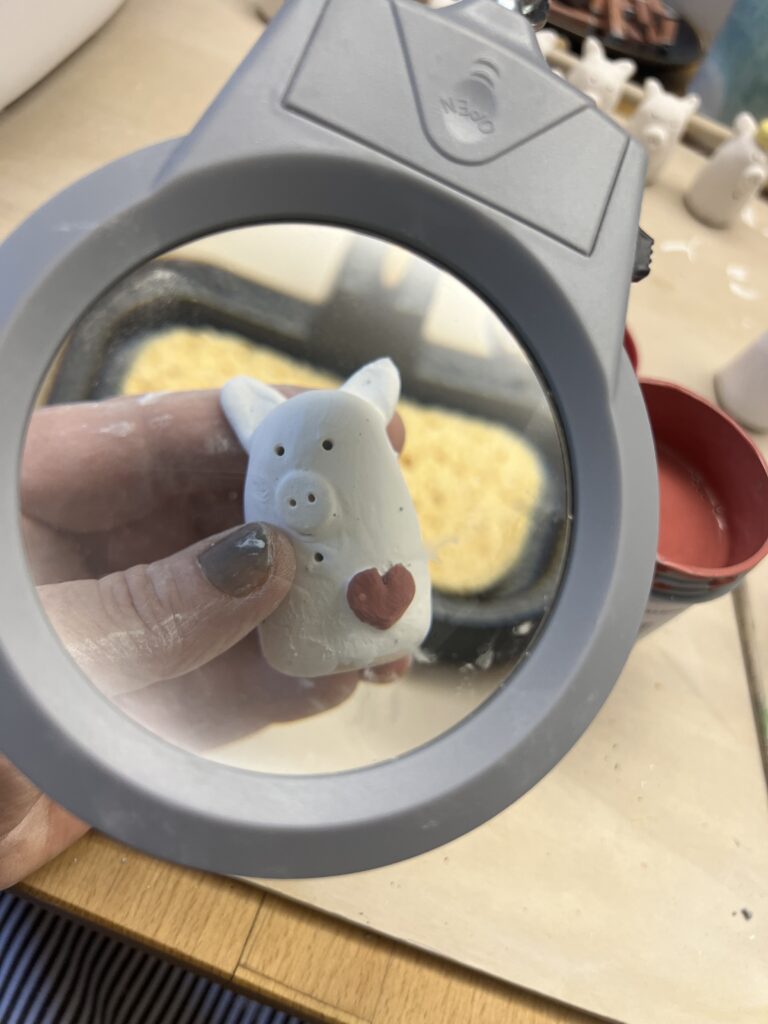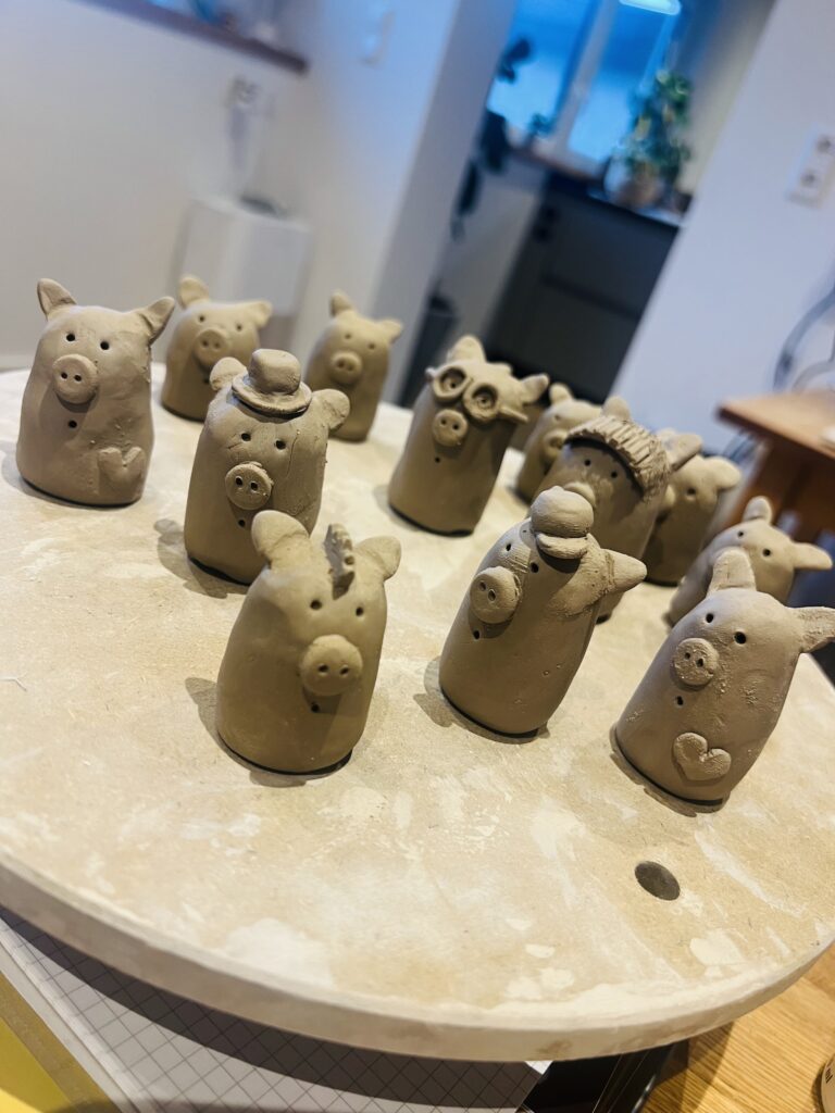 Schweinchen der besonderen Art gehen die Tage in den Brennofen und freuen sich auf neue Besitzer